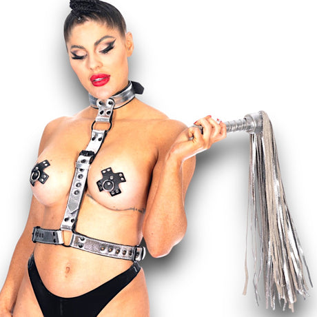 Regular price £179.95Unit priceUnavailableMetallic Leather Female Full Body Harness M2O