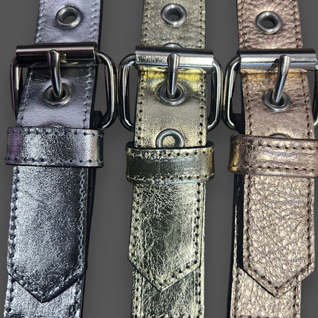 Regular price £174.95Unit priceUnavailable Metallic Leather Slave Lead Padded & Leather Lined Handle Silver/Black Width M2O