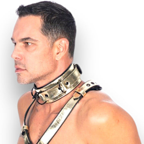 Regular price £109.95Unit priceUnavailableMetallic Leather Wide Strap D Ring Collar Padded & Leather Lined M2O