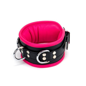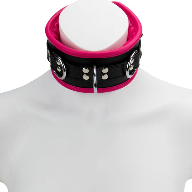 65mm Collar with 3X D-Ring Padded & Pink Leather Lined - Black/Pink / S/M is backordered and will ship as soon as it is back in stock.