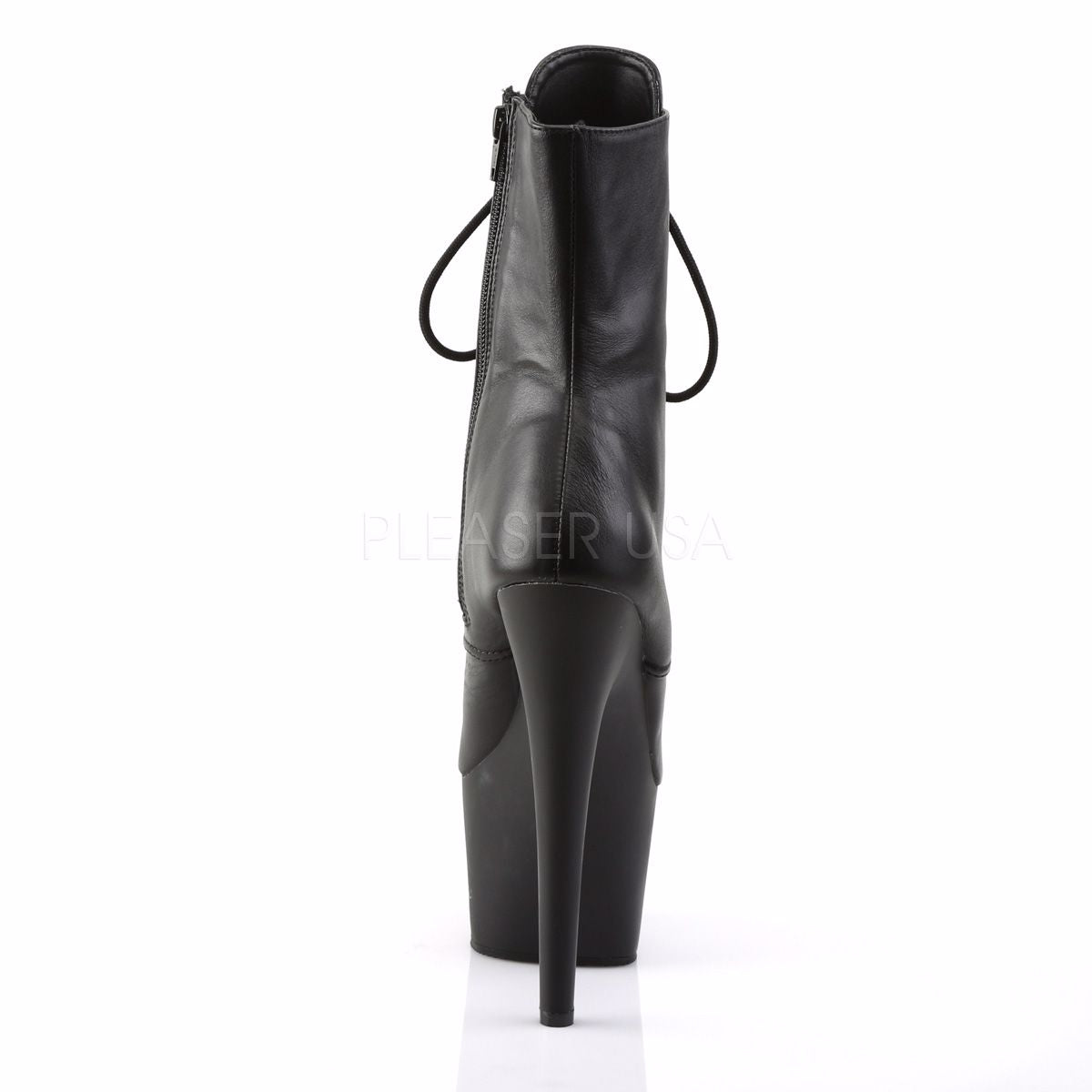 The Adore-1020 is a lace-up ankle boot with a 7-inch stiletto heel and 2-inch platform that gives you serious height without the full impact on your feet. Leather upper with functional lacing down the front and a side zip closure that makes getting them on and off straightforward.