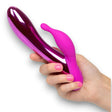 A rabbit vibrator with a curved internal shaft and flickering external teaser, both powered by independent motors. The LED lights pulse and shimmer during use, which is either a fun visual detail or completely beside the point depending on your priorities. Ten vibration modes give you range to work with.