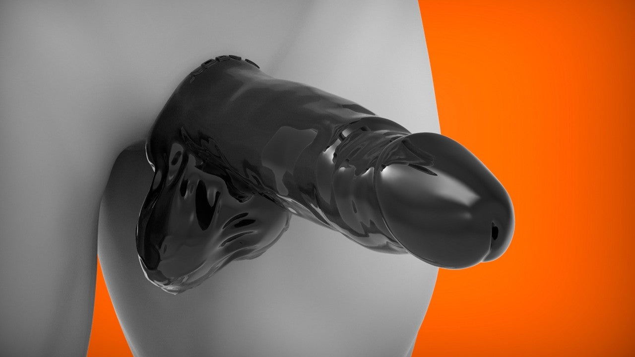 A cocksheath and ball sling combined, moulded from soft, stretchy TPR that moulds to your shape while adding noticeable size. The realistic head and textured ball pouch give it a natural look, and the built-in sling at the base keeps everything secure and helps maintain firmness.