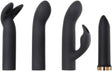 A compact rechargeable bullet that adapts to what you're after. The copper-finish bullet works on its own for pinpoint clitoral stimulation, or you can slip on one of three silicone sleeves: a curved G-spot tip, a dual-stimulation shape with external nub, or bunny ears for broader clitoral coverage. All three sleeves attach securely and stay put, even underwater.