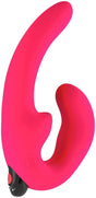 A strapless double dildo that's held in place internally by the wearer, leaving both hands free and maximising skin-to-skin contact. The bulbed end sits inside with a curved shape that targets the G-spot, while the external clit pad adds stimulation to help keep it secure. The smooth shaft extends outward for your partner.
