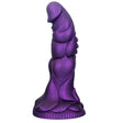 A fantasy-inspired dildo in metallic purple with ridges and bumps running along the shaft for textured sensation. Made from super-soft liquid silicone that's got enough give to be comfortable but holds its shape where it counts.