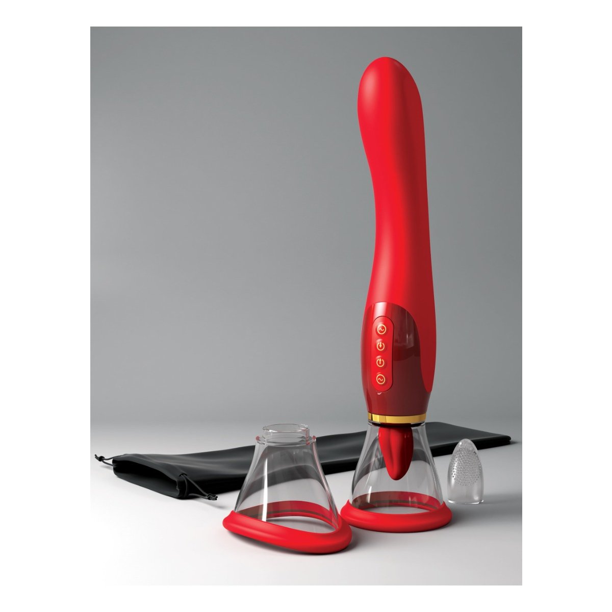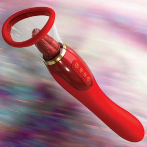 A multi-function vibrator that combines licking, suction, and vibration in one device. The textured tongue sleeve delivers focused stimulation, whilst the suction function adds intensity you can toggle on or off with a button press. Ten vibration modes and three speed settings give you plenty of control.