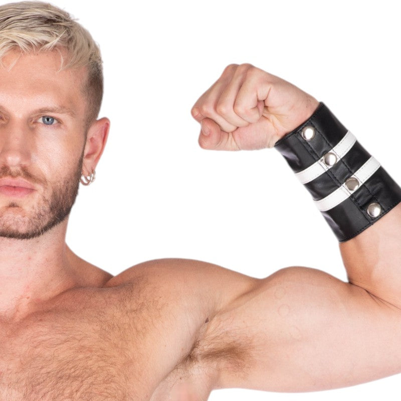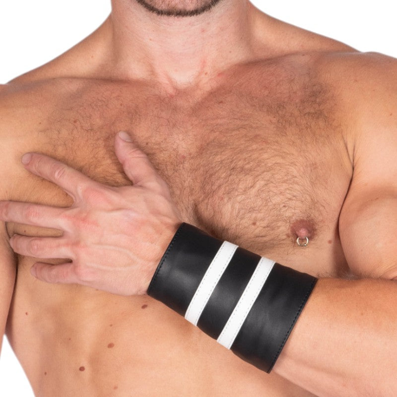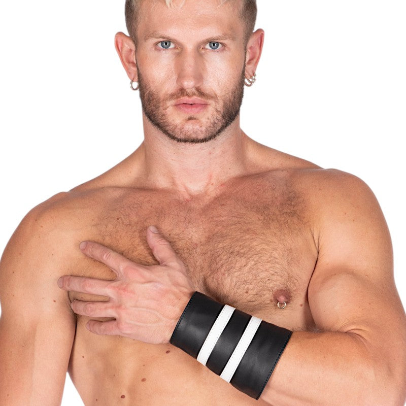 Leather Gauntlet Wallet White Stripes - Black/White / S/M is backordered and will ship as soon as it is back in stock.