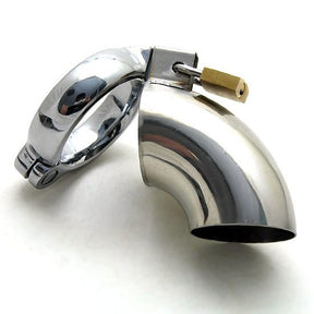 A steel chastity cage that's built for serious restraint. The metal construction is solid and unforgiving, and the included padlock means the wearer stays locked until you decide otherwise.