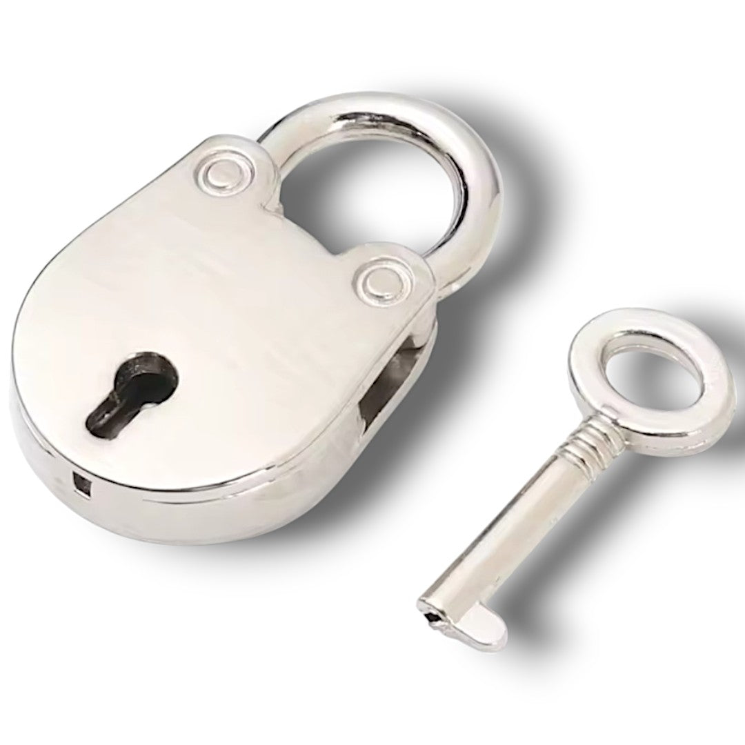 Metallic Leather Spikes & Padlock Collar Padded & Leather Lined