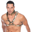 Metallic Leather Male Upper Body Cross Harness Leather Lined M2O - Gold / Black / X-Small is backordered and will ship as soon as it is back in stock.