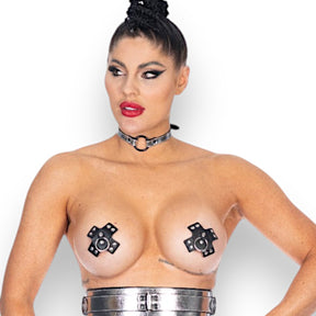 Metallic Leather Slim Centre Ring Collar M2O