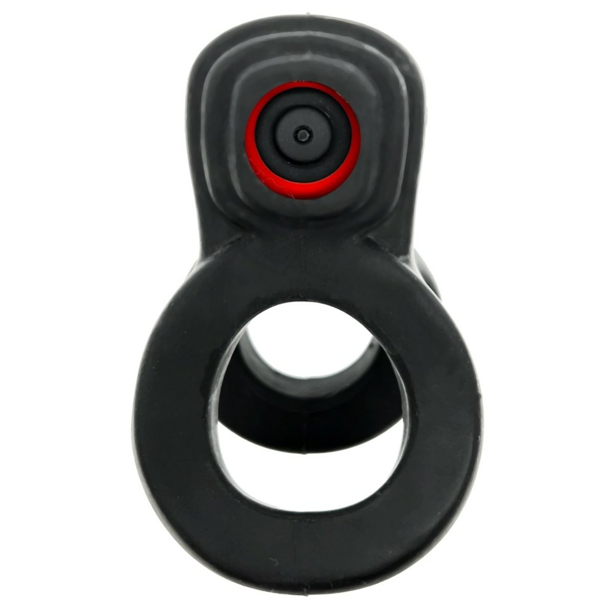 A cock ring with a twist - this one uses two rings to position a vibrating bullet lengthwise along your shaft rather than at the base. The textured nub at the front is designed to make contact during penetration, sending vibrations to both the wearer and their partner.