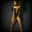 A seamless bodysuit with an asymmetrical cutout design and thong back. The nylon-spandex blend sits smooth against your skin without visible lines, and the fabric has enough stretch to move comfortably without riding up.