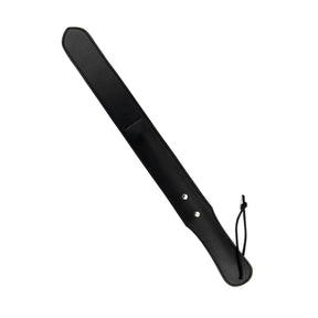 A leather spanking strap with a steel insert that adds real weight and authority to each strike. The steel reinforcement gives you consistent, solid impact without having to swing harder, and the leather construction means it's built to last.